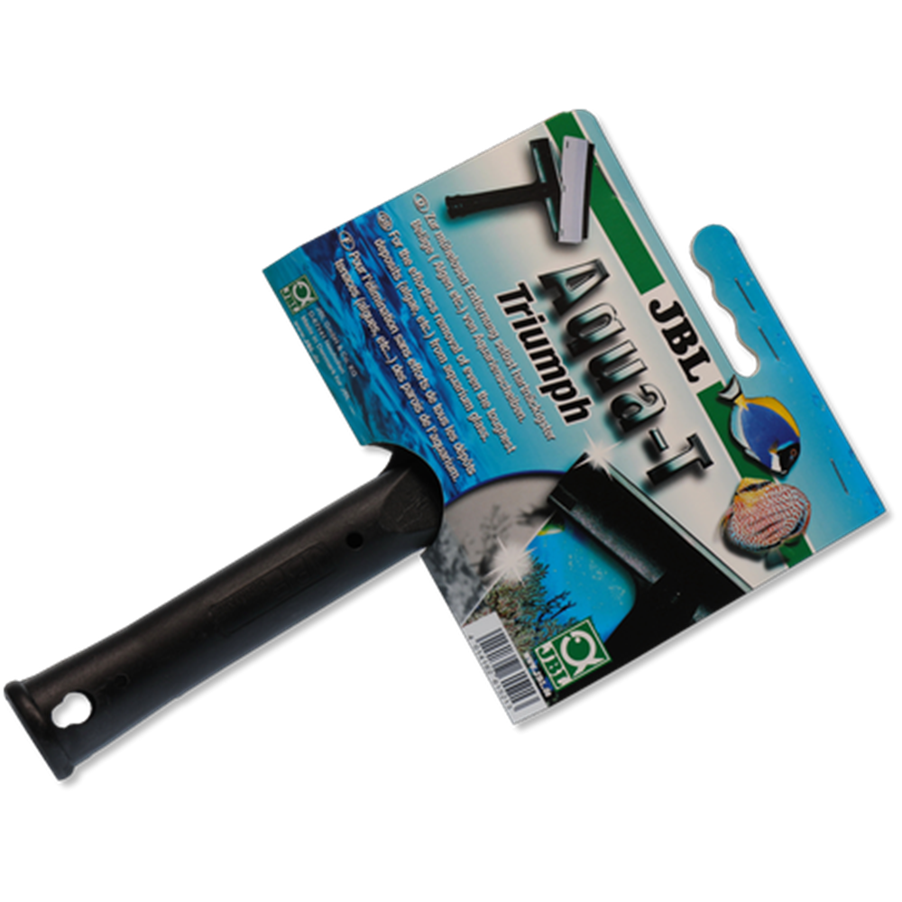 İnatçı tabakaların kolayca uzaklaştırılması JBL'nin Aqua-T Triumph cam temizleyicisi akvaryumun camına yapışmış inatçı yosunların kolayca uzaklaştırılmasına olanak verir. Temizleyicinin sapı ile bıçak arasındaki mesafe kısa olduğundan akvaryumun silikon yapıştırma yerlerine zarar vermez. Aqua T tatlı su ve deniz suyu akvaryumlarında kullanılmaya uygundur. Koruyucu kapağı, kullanılmadığı zamanlarda oluşabilecek yaralanmaları önler ve aynı zamanda akvaryum camlarının dış yüzeylerinin temizliği için lastik kazıyıcı görevi görür.