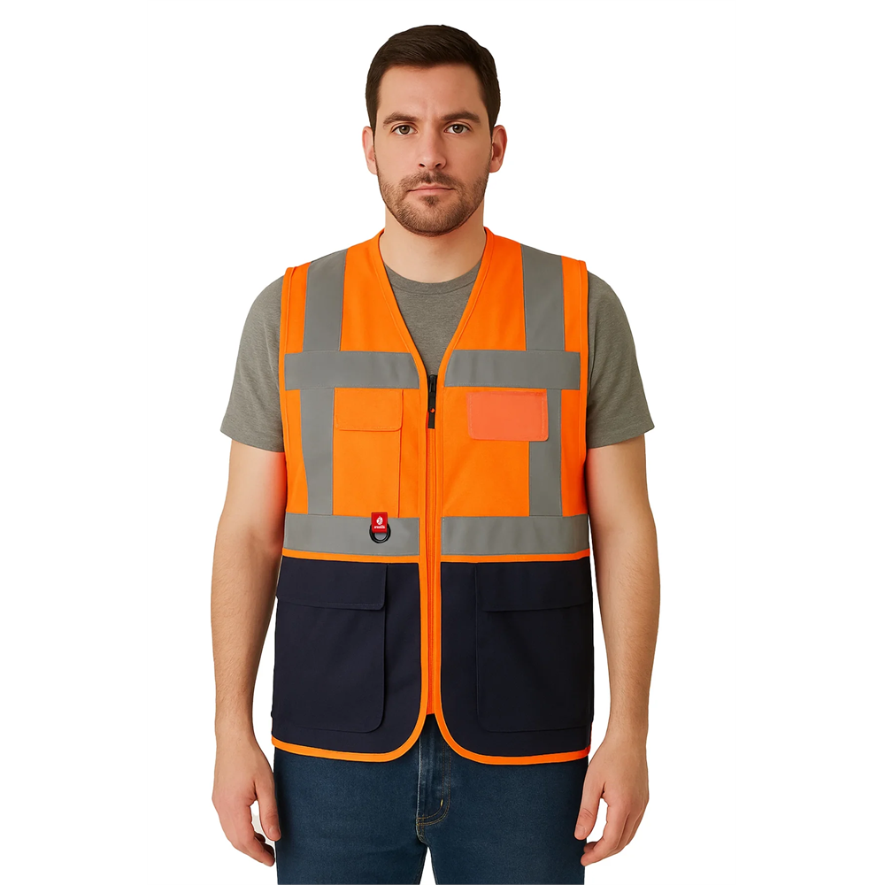 Abisko Executive Reflektörlü İş Güvenliği Yeleği - Yüksek Görünürlüklü, Çok Cepli, Dayanıklı ve Fonksiyonel F.TURUNCU-LACİVERT S