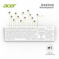 Acer OAK920 Q Beyaz 1.8mt Kablolu Klavye-Tek Tuş Hesap Makinalı (Sessiz Tuş)