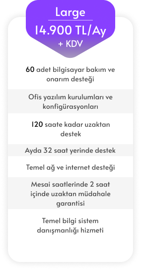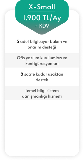 Belirtilen paketler haricindeki bilgi sistem ihtiyaçlarınızı bize bildirmeniz