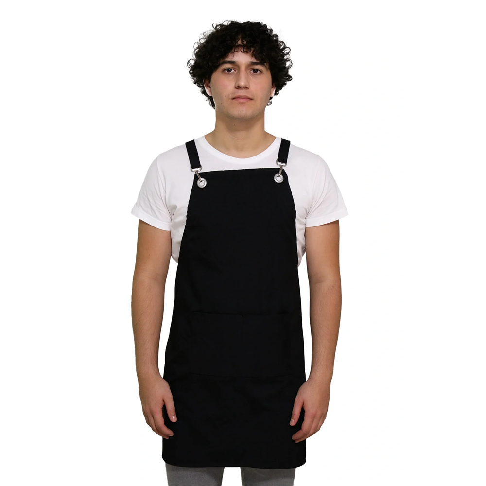 Barbanza Siyah Askılı Şef Önlüğü – Dayanıklı Kumaş, Mutfak ve Barista Önlüğü SİYAH STD