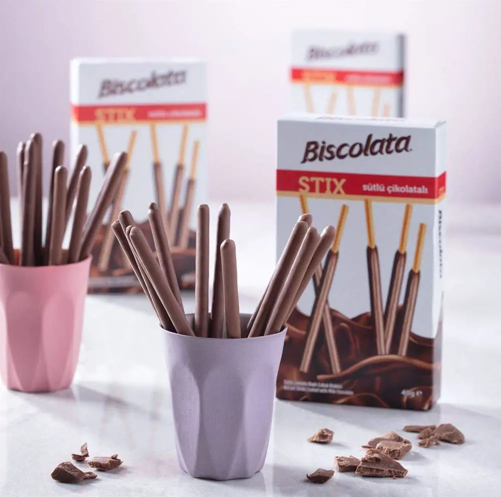 Biscolata Stix, enfes bisküvi çubuklarının, çikolata ile kaplanmasından oluşmaktadır. Bu lezzetli atıştırmalık hijyenik koşullarda üretilip, paketlenmiş olan Biscolata Stix, Şölen kalite ve güvencesi ile sunulmaktadır. Yoğun kakao tadı ve dengeli şeker oranı ile büyük küçük herkesin damak tadına uyar.