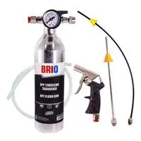 BRIO DPF Kit Tabancası, partikül filtresi temizliği ve durulama işlemleri için kullanılan bir ekipmandır. İşte temizleme ve durulama adımları: **Temizleme:** 1. Motoru kapatın ve araç ile susturucunun soğumasını bekleyin, böylece aşırı sıcak yüzeylerde çalışmanın önüne geçmiş olursunuz. 2. Filtre sensörünü çıkarın. 3. Bir litre DPF Temizleme sıvısını BRIO DPF Temizleme Tabancası veya seçilen yıkama ekipmanına doldurun. 4. Basınçlı havayı bağlayın. 5. Varsa, basınç sensörünü çıkarın. 6. Yıkama sıvısını, partikül filtresinin üst kısmındaki egzoz dumanı çıkış yönünde püskürtün. 7. En az 3 dakika boyunca hava püskürtmeye devam edin. 8. 30-40 dakika bekleyin ve ardından aynı işlemi DPF Durulayıcı ile tekrarlayın. **Durulama:** 1. DPF Temizleyici uygulanan yüzeyi durulamak için kullanın. 2. Ürünü, BRIO DPF Temizleme Tabancası veya seçilen yıkama ekipmanına doldurun. 3. Basınçlı havayı bağlayın. 4. Eğer varsa, basınç sensörünü çıkarın. 5. Durulama sıvısını, DPF Temizleyiciyi uyguladığınız yüzeylere püskürtün. Bu işlem, partikül filtresini temizlemek ve durulamak için kullanılır. Lütfen güvenlik önlemlerini göz önünde bulundurarak işlemi gerçekleştirin ve ürünün talimatlarına uygun olarak kullanın.