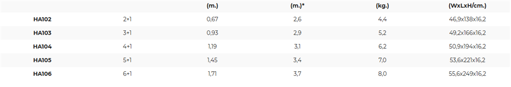 • Taşıma / Saklama boyutlar: (WxLxH)  50,9x194x16,2