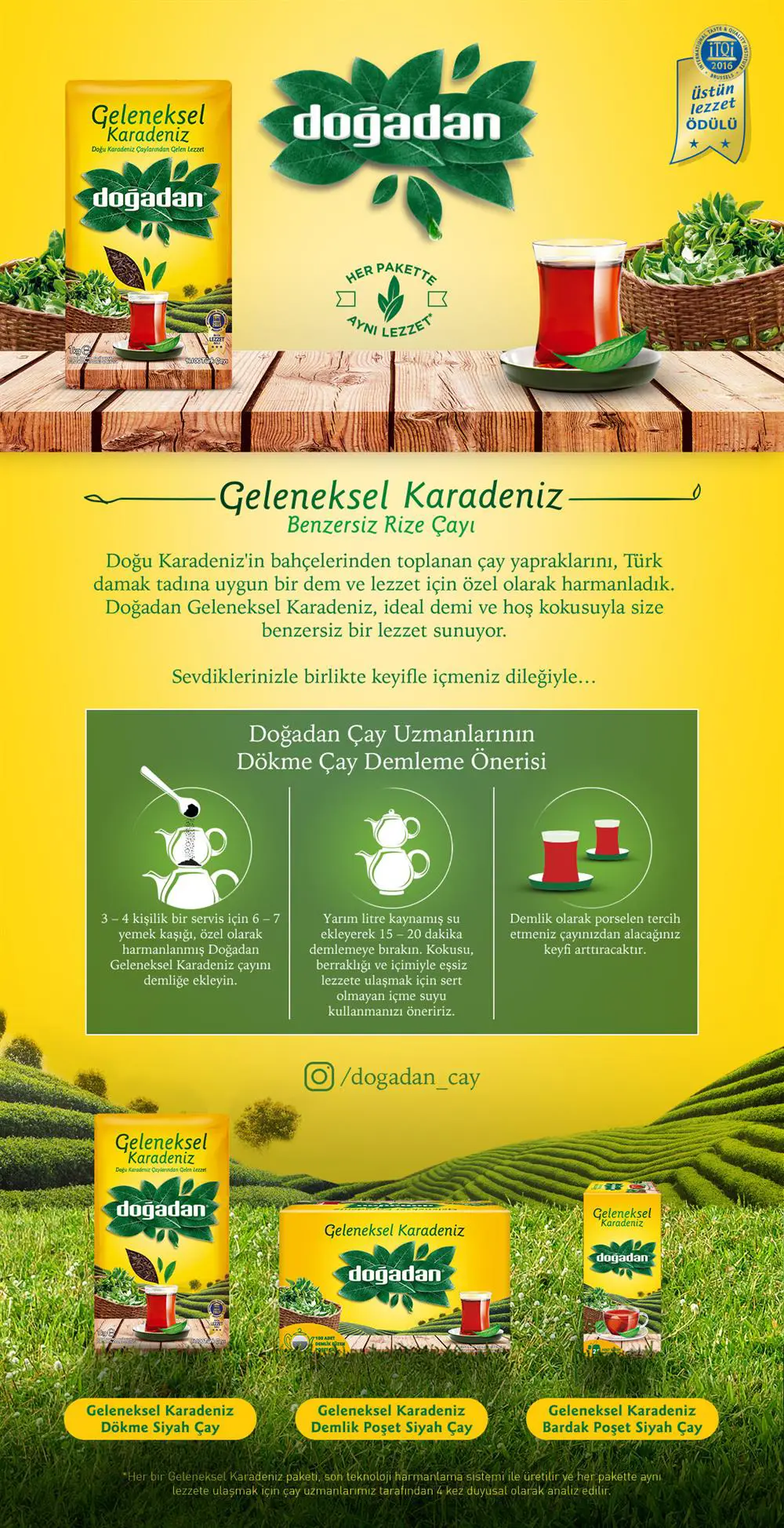 ''Doğanın sonsuz iyiliği ve zenginliğini, doğal, sağlıklı bir yaşam için sunmak.'' vizyonuyla üretimine devam eden Doğadan; yenilikçi, yüksek değerli marka ve ürünler ile sürdürülebilir karlılığı sağlayan ve paydaşlarına değer katan uluslar arası bir çay şirketi olma hedefiyle kurulmuştur. Doğadan ürünlerinin hammaddeleri 5 kıta, 80 ülkeden temin edilmekte ve üretimin her aşamasında uzmanlar tarafından denetlenir. Ürünler fiziksel, kimyasal ve mikrobiyolojik analizlerden geçirilmektedir. Doğadan Geleneksel Karadeniz Dökme Çay 1 kg, seçilmiş bahçelerden özenle toplanan çay yapraklarının, Türk damak tadına uygun bir dem ve lezzet için özel olarak harmanlanmasıyla ortaya çıkmıştır. Doğadan, Geleneksel Karadeniz Çayı’nın taze ve nefis tadı, ideal demi ve hoş kokusunu bir araya getirerek sizlere bu ürünü sunmaktadır. Siz de Doğadan Geleneksel Karadeniz Dökme Çay siparişi vermek için Ofix.com’a tıklayabilirsiniz.