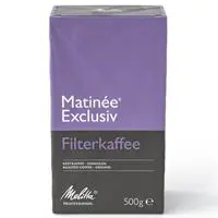 Melitta Professional Matinée® Exclusiv, tam gövdeli, güçlü ve baharatlı bir filtre kahve deneyimi sunan öğütülmüş kahvedir. Hem klasik filtre makineleri hem de sütlü kahve hazırlığı için uygundur.