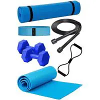 Evde spor yapmak için gerekli temel fitness ekipmanlarını tek pakette sunar