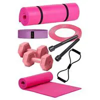 Pilates Seti Pembe, evde spor yapmak isteyenler için tasarlanmış çok amaçlı fitness ekipman setidir. Pilates matı, dambıl, direnç bandı ve atlama ipi gibi temel spor ekipmanlarını bir arada sunarak pilates, fitness, yoga ve fonksiyonel antrenmanlar için ideal bir çözüm sağlar.