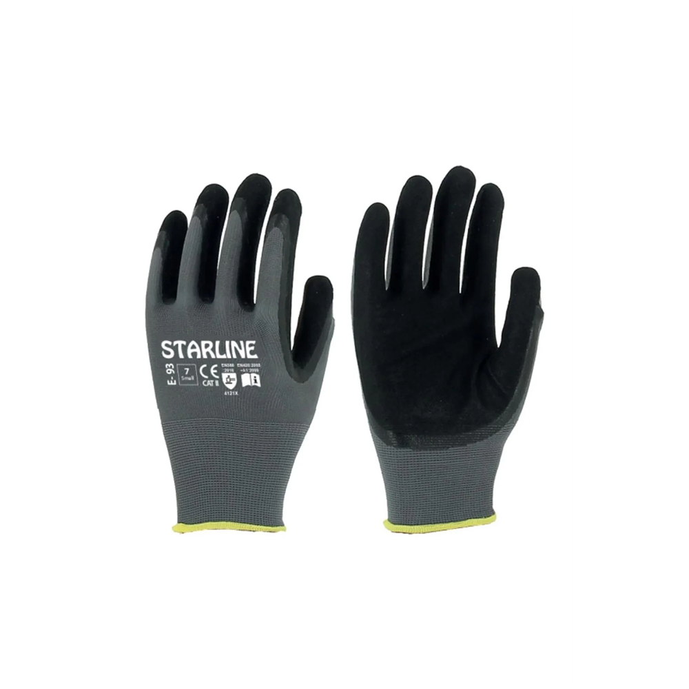 Starline E-93 Köpük Nitril Kaplamalı İş Eldiveni Uzun Ömürlü ve Esnek Koruma SİYAH 7