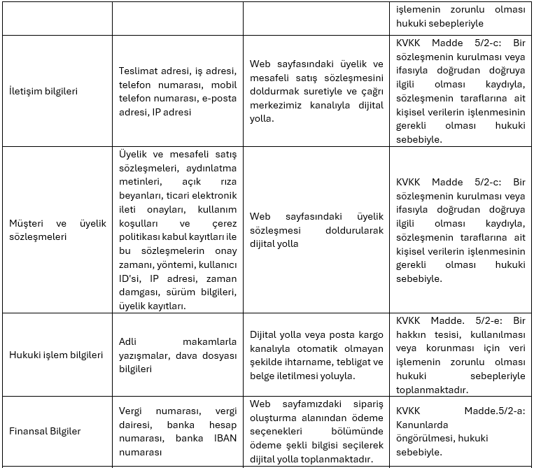 Kişisel verileriniz, KVKK’nın 5 ve 6. Maddelerinde sayılan hukuki sebeplere uygun olarak aşağıda detaylıca belirtilen yöntemlerle toplanmakta ve işlenmektedir.