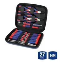 • WORKPRO WP209007 27 Parça Profesyonel Hassas Tamir/Bakım Alet Seti • Mobilya montajında, genel tamirat ve tadilat işleri ile mekanik veya elektrikli/elektronik aletlerin hassas işçilik gerektiren bakım ve onarımında profesyonel olarak kullanılabilmesi için paslanmaya ve aşınmaya dayanıklı Krom Vanadyum kaplamaya sahiptir. • Hassas elektronikçi Tornavidalar, mini pense, mini kargaburnu, mini yan keski, mini uzun burun pense, 9mm askılı maket bıçağı, hobi maket bıçağı ve yedeği, elektronikçi cımbız setinden oluşmaktadır. • Tornavidalar mini penselerin uçları yüksek tork mukavemetli modifiye edilmiş Cr-V çelikten üretilmiştir. • Cr-V alaşım, pas ve korozyon gibi dış etkenlerden koruyarak uzun ömürlü yapı kazandırır. • Vidalama yaparken sürtünmeyi en aza indirerek vidaların daha iyi kavranmasını sağlar, bu sayede vida yuvalarına zarar vermez. • Geliştirilmiş güçlü manyetik uçlara sahip 12 Parçalı Elektronikçi Tornavida Seti, dayanıklılık ve kauçuk kaplamalı tutma sapı rahat kavrama sağlar. • Tornavida setinin güçlü manyetik ucu, baş aşağı durumlarda bile vidanızı tutar. Daha iyi kontrol sağlar. • Rahat kullanım için ANTI-SLIP kaymayan, kolay kavranan tutma sapı sayesinde konforlu kullanım imkânı. • Üst düzey ANTI-SLIP sap tasarımı kaymayı önler, el yorgunluğunu azaltır. • Yüksek kaliteli CR-V çelik kullanılmıştır, hassas ve ısıl işlemden sonra vidalama uçları daha sert ve dayanıklı hale getirilmiştir. • Tepe noktasına entegre avuç içinde döner başlık sayesinde hassas vidalama yaparken avuç içini acıtmaz, üstün kontrol sağlar. • Dahili elektronikçi hassas cımbız seti ile elektronik bileşenler üzerinde küçük parçaların lehimleme sırasında kolayca tutulmasını sağlar. • Son derece dayanıklı bez taşıma çantası ile alet ve aksesuarları temiz ve güvenli bir şekilde saklama imkânı. • İÇERİK: • 1 Adet 120mm Mini Pense • 1 Adet 110mm Mini Yan keski • 1 Adet 125mm Mini Kargaburnu • 1 Adet 160mm Mini Uzun Burun Pense • 3 Adet = PH000 / PH00 / PH0 • 4 Adet = SL1.5 / SL2 / SL2.5 / SL3 • 5 Adet = T6 / T7 / T8 / T9 / T10 • 4 Adet Cımbız Seti • 1 Adet 9mm Askılı Maket Bıçağı • 1 Adet Hobi Maket Bıçağı • 5 Adet Hobi Maket Bıçağı Yedeği • Bez Taşıma Çantası